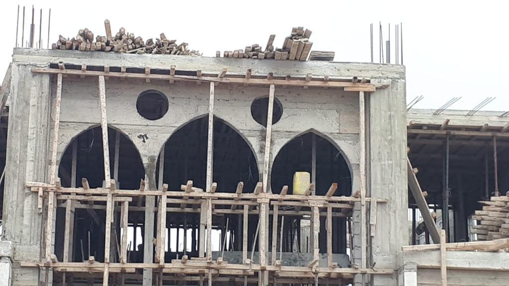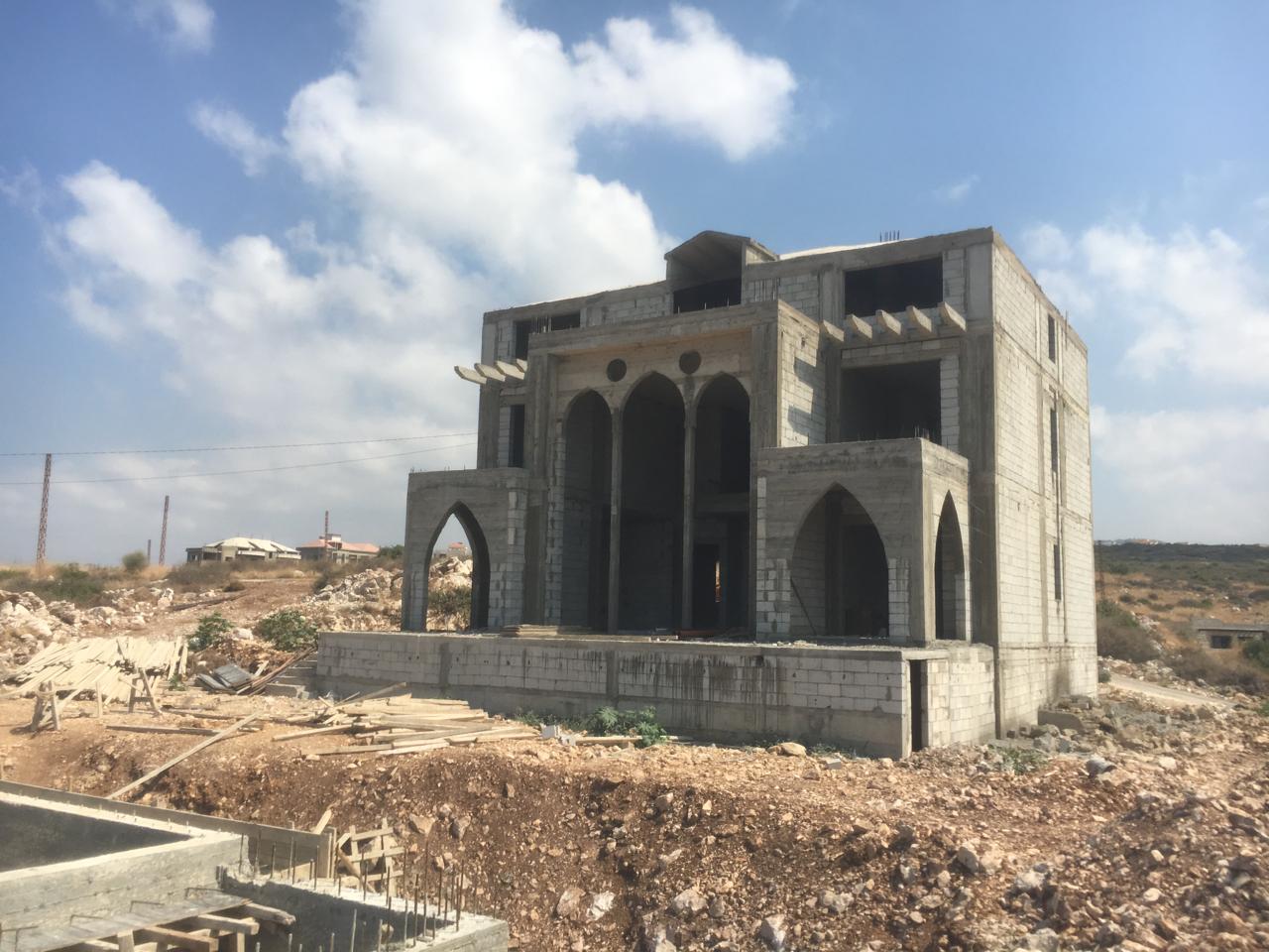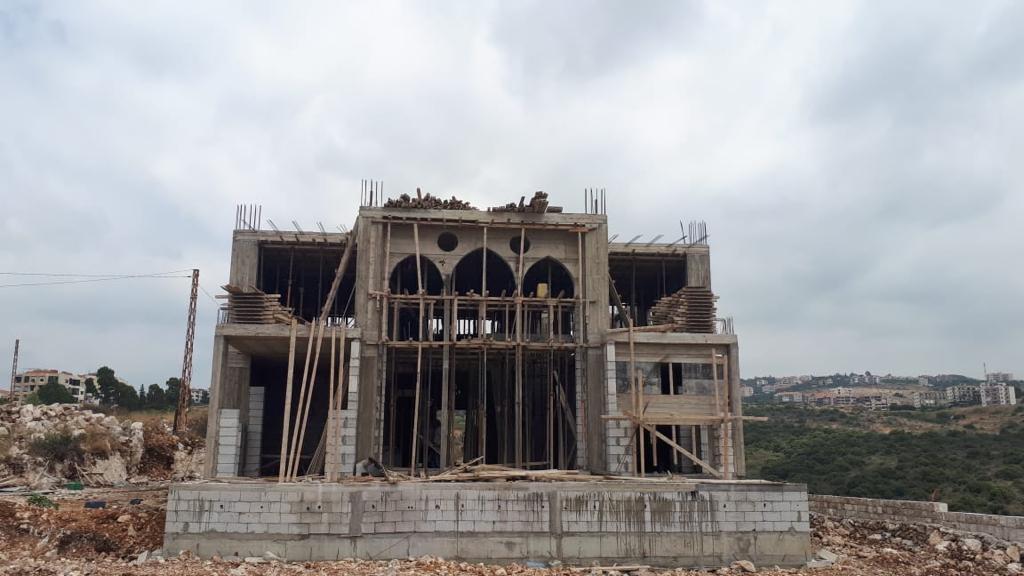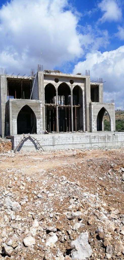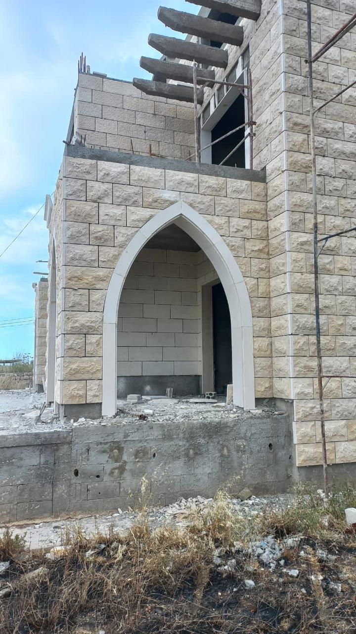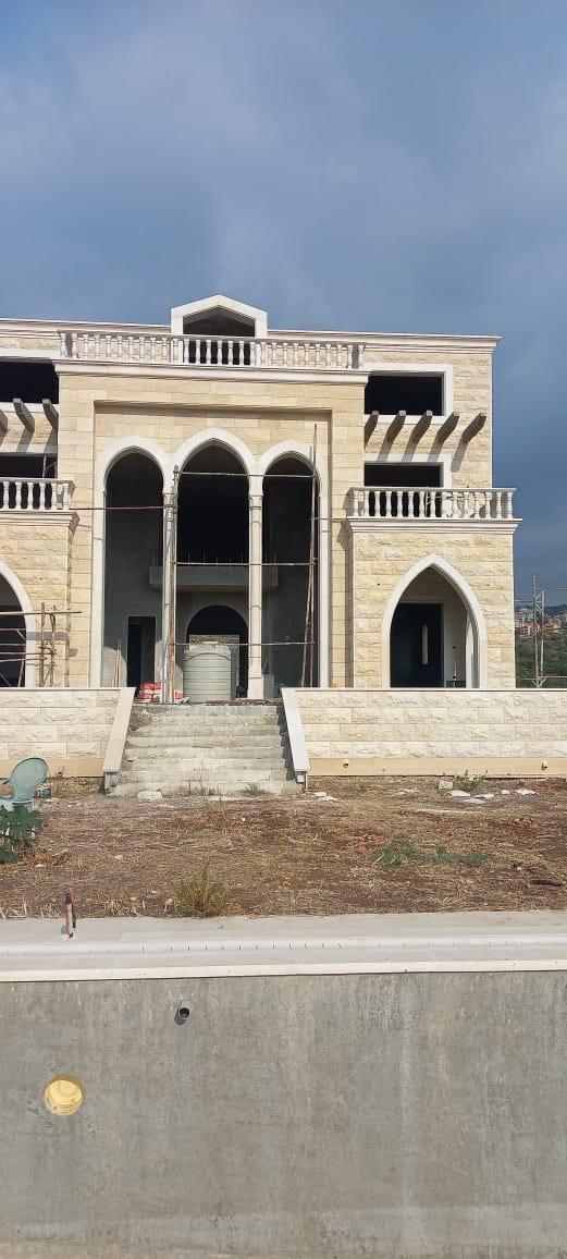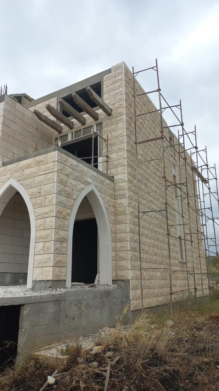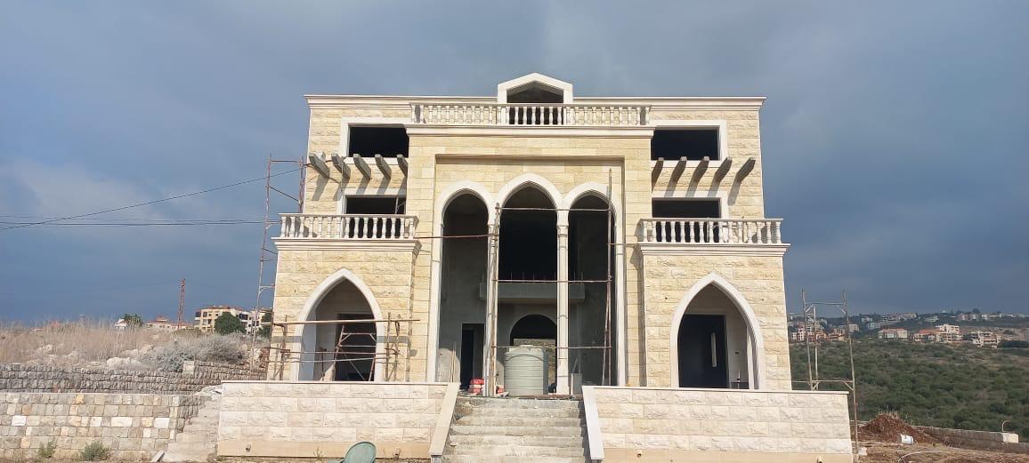 This stunning villa showcases a refined blend of Mediterranean and contemporary architecture, highlighted by clean geometric lines, warm natural stone cladding, and a grand arched entrance that creates a striking focal point. Designed with meticulous attention to detail, the façade features symmetrical windows framed with decorative elements, lush greenery, and custom ironwork that elevates the home’s character and charm.